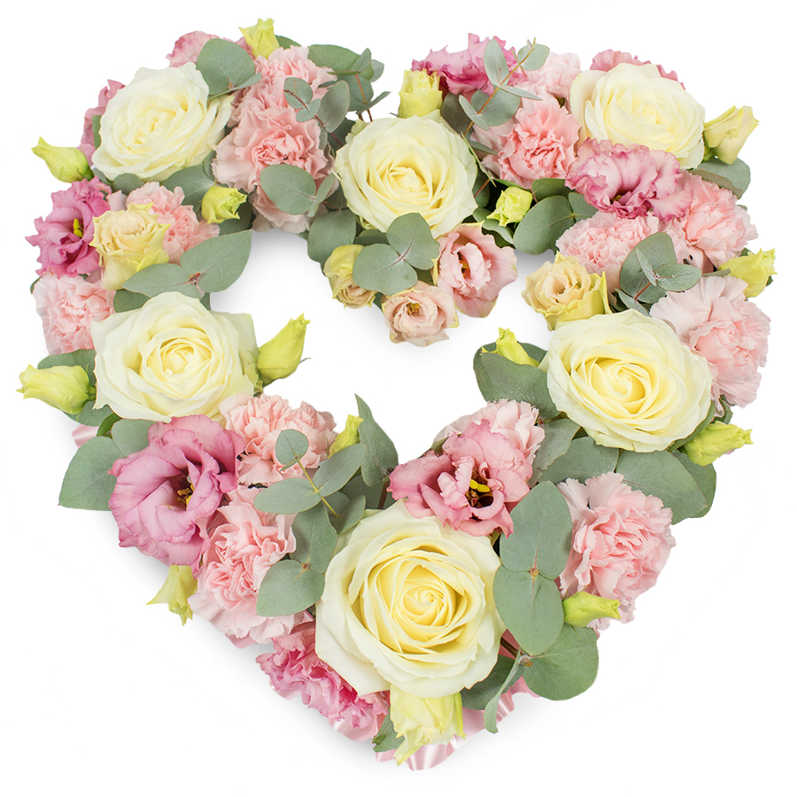 Show your appreciation and love with our Heartfelt Elegance Floral Arrangement. This exquisite bouquet is a perfect blend of white roses, pink carnations, pink lisianthus, and eucalyptus leaves, meticulously arranged to form a stunning heart shape that symbolizes your heartfelt emotions.